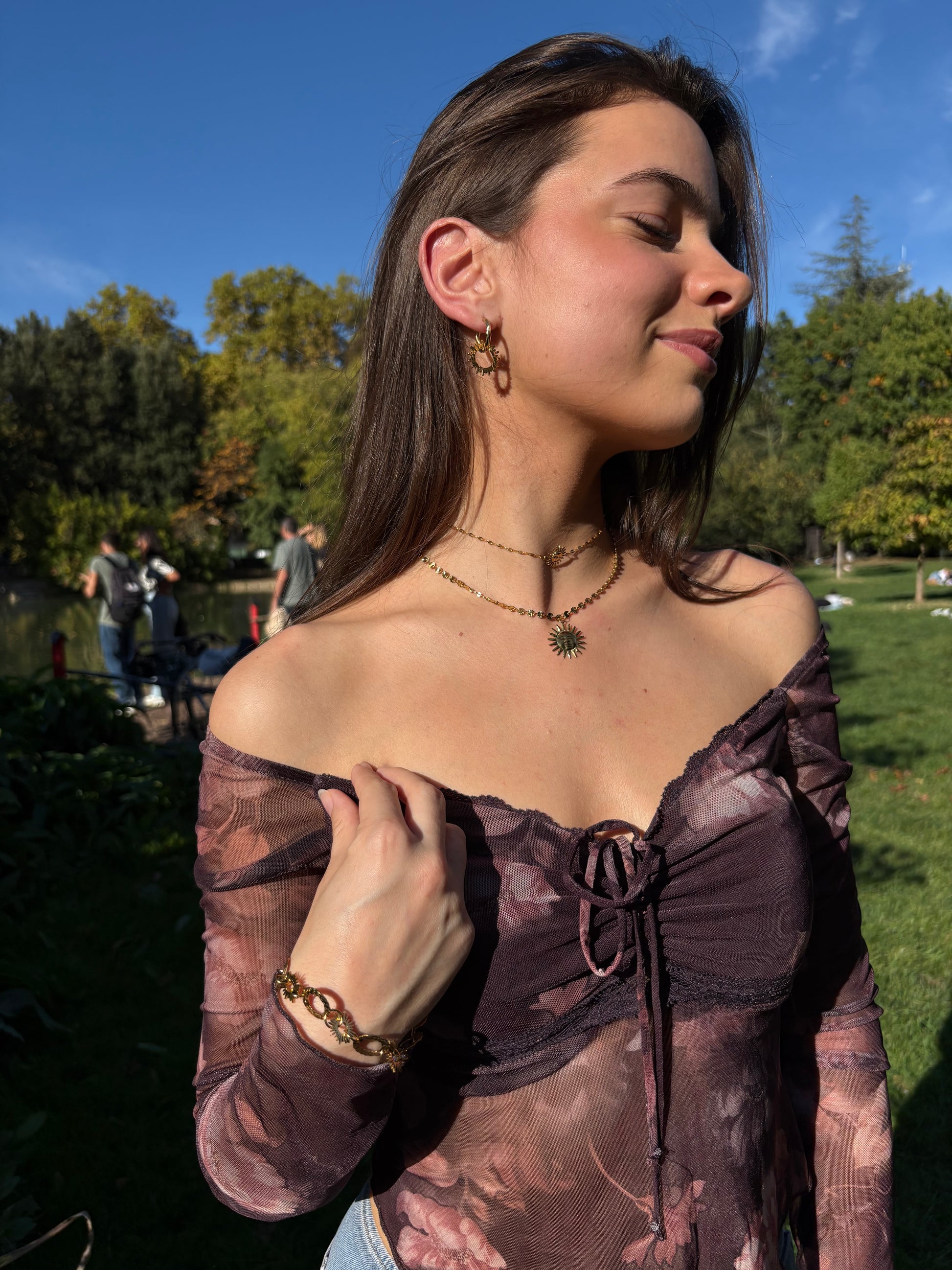 Collection inspirée du soleil et du doré. Bijoux lumineux et éclatants, pensés pour attirer la lumière et révéler toute leur intensité.